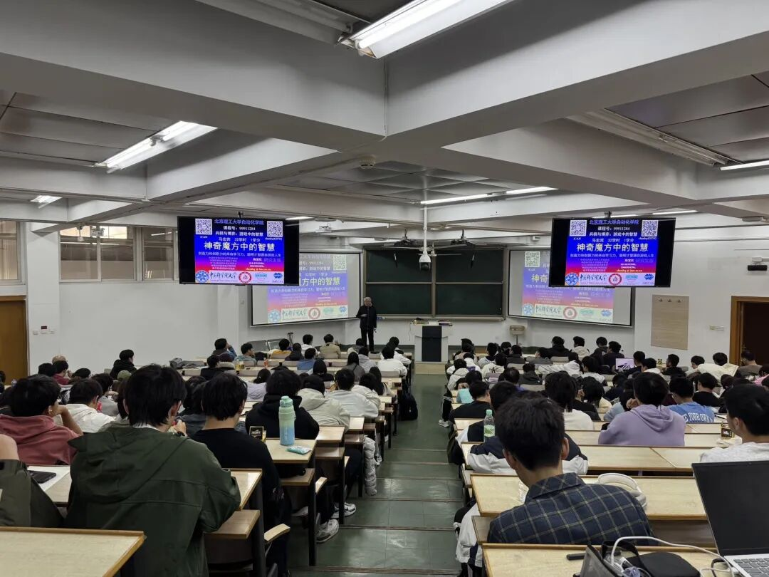 讲座伊始,陈老师以魔方为媒,邀请同学上台参与复原演示。他生动阐释魔方中蕴含的逻辑思维与空间想象力与微电子科研工作的内在关联,巧妙拉近尖端科技与学子之间的距离。