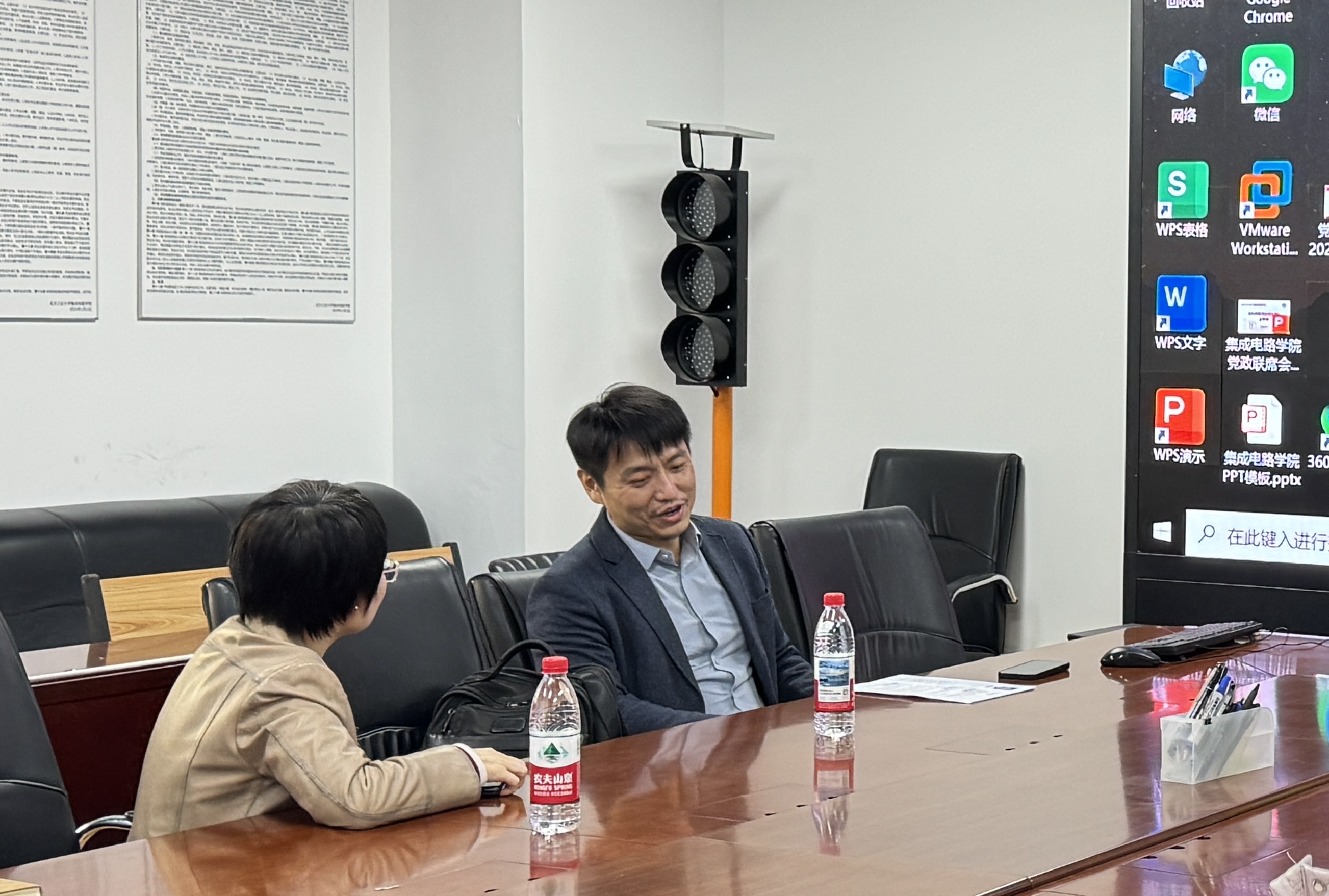 活动伊始,齐经理与魏老师围绕行业测试设备现状及公司业务重点展开深入交流。魏老师结合学院在集成电路测试方向的教学与科研成果,介绍当前学生培养的实践能力和技术基础。齐经理则详细阐述北京冠中集创科技有限公司在ATE领域的技术积累与市场布局,企业对测试理论知识扎实和设备操作经验丰富的复合型人才需求尤为迫切。双方还就联合开展学生实践培养展开交流,为后续校企协同育人奠定良好的基础。