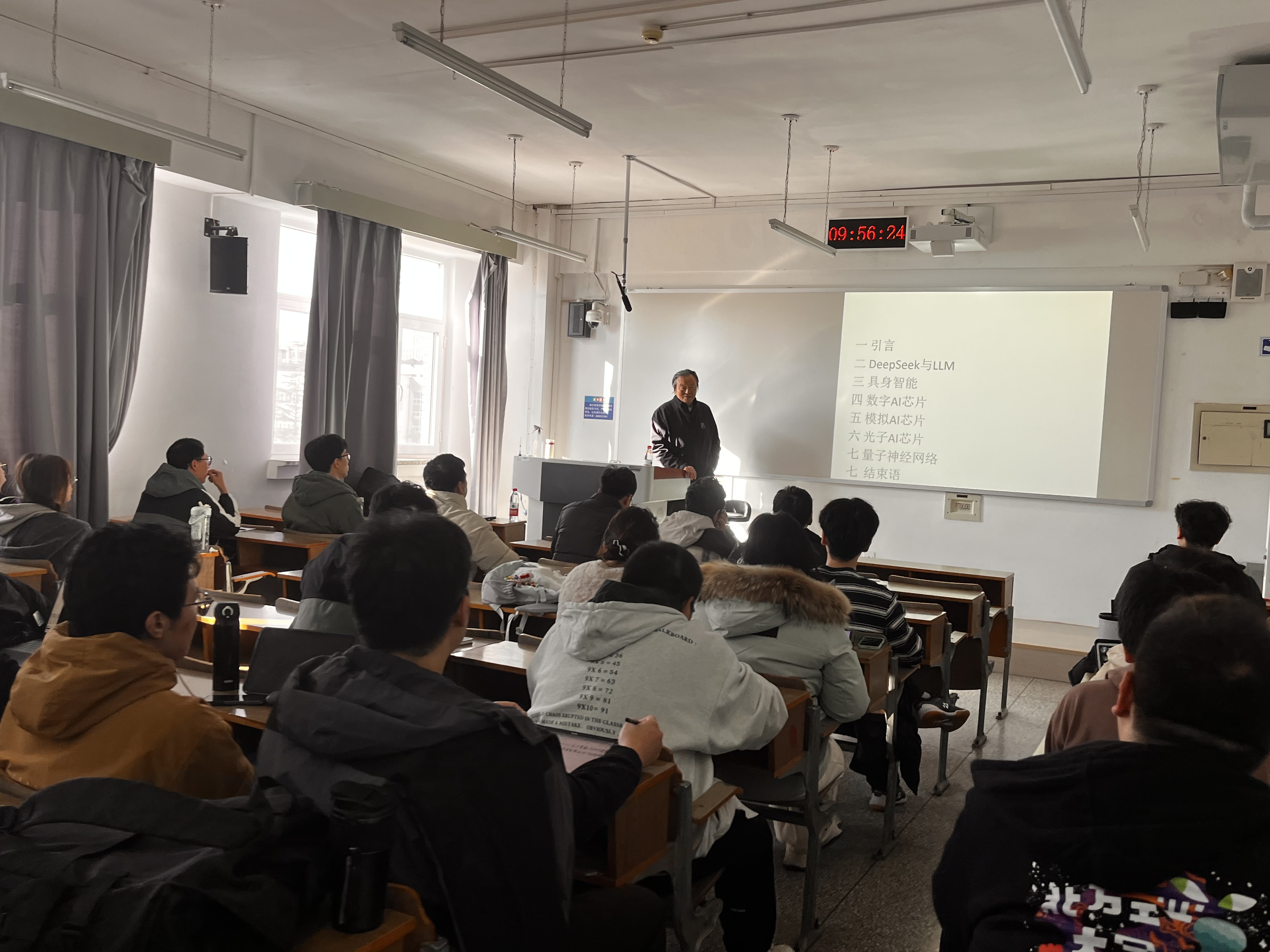 11月10日,集成电路学院特邀中国电子科技集团公司原副总经理、首席科学家赵正平博士,为研究生带来题为“人工智能大语言模型、具身智能与AI芯片新进展”的专题讲座。